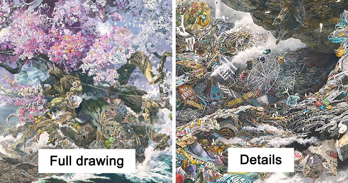 Japanese Artist Fits Entire Worlds Into His Drawings, And His Surreal Works Take Him Years (28 Pics)