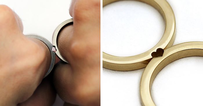 The rings are made by Eliad, a goldsmith, and Maya, a designer, who together run Cadi Jewelry studio in Tel Aviv, Israel. They’re available in a variety of metals including gold, silver, and platinum, and there are several designs to choose from. One pair of rings contains a heart, another the moon and the stars, and you can even get your own initials engraved in them thanks to a personalized service they offer. Much like a perfect relationship, the rings work best when they’re together, so if you’re looking for something beautiful and distinctive then head on over to their Etsy store where you can find the full range there.