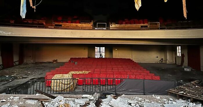 In Shawn’s photos, you can see just that: buildings leveled, cars mangled, debris and rubble everywhere. One particular picture spoke volumes—a snap in a movie theater, from the perspective of the viewers, an empty cinema with a heartbreaking view of the devastation framed perfectly where the screen used to be.