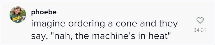 99.9% of the time the ice cream machine is not broken. There are three reasons why we usually do tell you the ice cream machine is broken. One, it's being cleaned. The ice cream machine is cleaned on the clock, no one comes in when we're closing and cleans it. Two, it's in heat mode, which is basically the ice cream in there is hot for whatever reason, so we can't use it. Three, if it's extremely busy and we're extremely understaffed. Like I'm saying, there's one person back here, a manager, one or two people in grill and one person up front, and we're backed up with cars, a lot of the time, we'll just not serve ice cream until the rush is over.