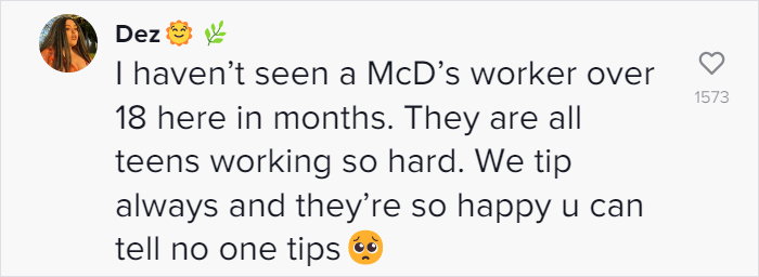 We're technically not allowed to accept tips, but genuinely tip your service workers. It will literally make our day. A fucking dollar makes our day, I swear to God, tip them, tip us.
