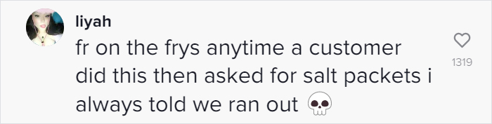 That "life hack: get a fry with no salt, ask for salt at the window and get a fry fresh" is bullshit. First of all, you can just ask for the fry made fresh and we'll make it fresh. Second of all, you know we can just take the fries out of the thing and just put it back in the fryer for like 5 seconds and it burns all the salt off?