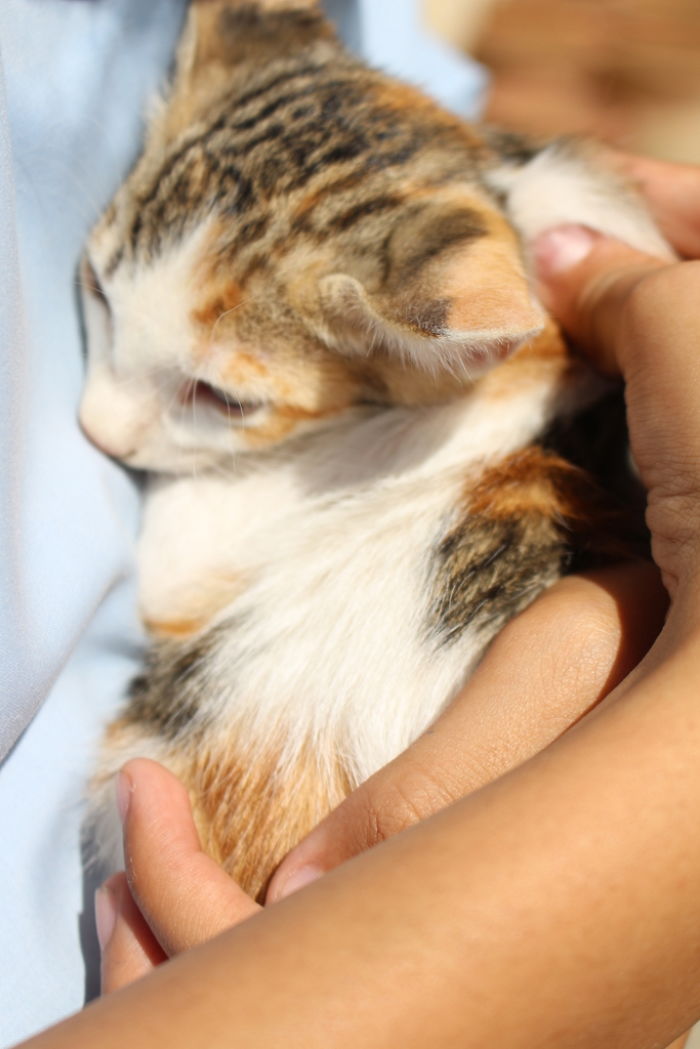 I picked up Lori where she was sleeping inside a flower pot. Apart from a few scratches my my uniform and arm, it felt good to hold the kitten.