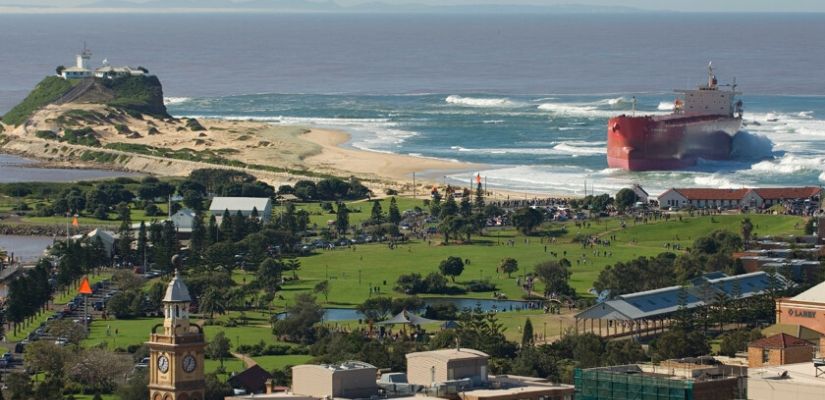 For reference https://visitnewcastle.com.au/blog/a-look-back-on-the-pasha-bulker-ship-happens will show you from a different perspective. It occurred when a massive storm hit. There was major flooding everywhere. I drove into see and you think the photo is mind blowing! It was amazing. They were able to get it off the beach with no serious damage. It was there for a few days. The crew was rescued by helicopter which was even more amazing.