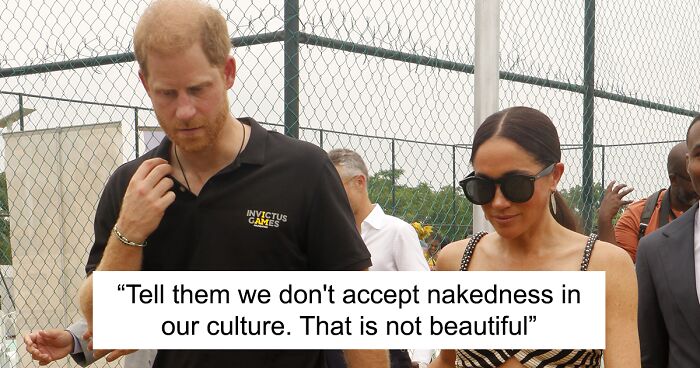 Some people believed the mention of “nakedness” was a reference to Meghan Markle’s outfits in Nigeria, particularly a halter-style dress with a V-neck and a separate black-and-white dress with cut-out details below the chest and a front slit, both designed by Johanna Ortiz.