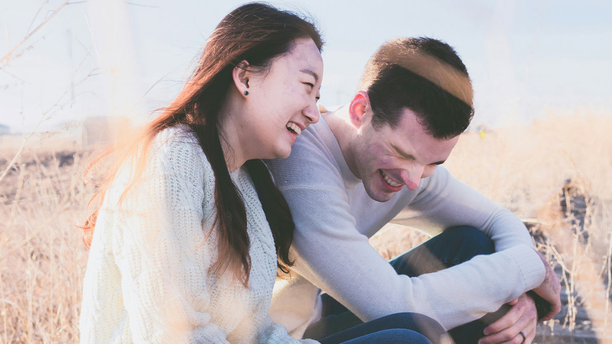 A man and woman laughing together in a sunny outdoor setting. Does a girl burping, farting, snorting etc really not bother you? A lot of guys say they don't but I know some who do.