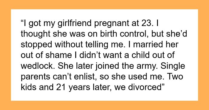 I got my girlfriend pregnant when I was 23. I thought she was on birth control however she stopped taking it without telling me. I thought she was for me but there were many red flags. I married her out of shame. I didn't want to have a baby out of wedlock. Then she joined the army , it was part of her plan. You can't join the military as a single parent. She had plans to divorce me when she got use out of me. Two kids later in that rabbit hole and 21 years later we are divorced. It broke me for 2 solid years. I had to get counseling and find myself lol. I'm better now and have found true love. I wish none of it happened. It also [mess] my daughter up growing up with her. My son's aren't as bad. I wish I had a redo.