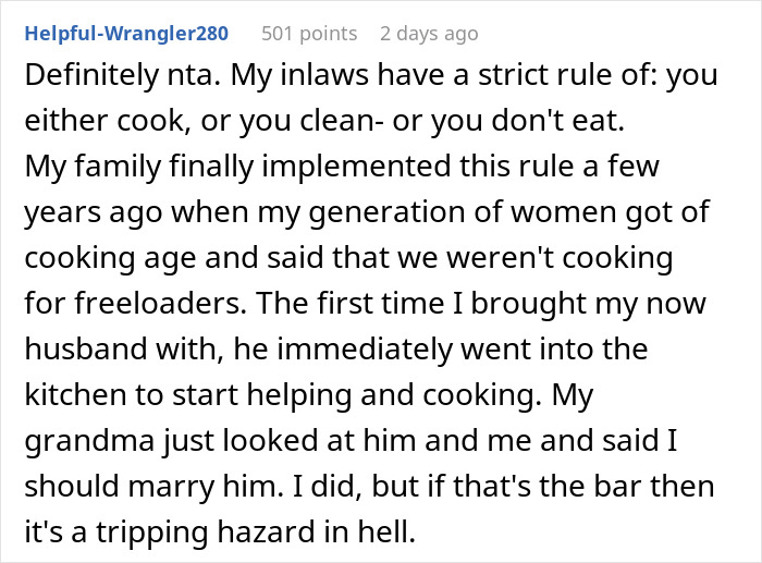 So instead of watching the game, the guys in this situation definitely could’ve set an example for the girls and helped the family women with the dinner.