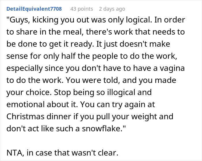 But when Reddit user Objective_Set4644 and other women from her family asked the men to help, they chose to watch the game instead. So, in an effort to teach them a lesson, the ladies kicked them out.