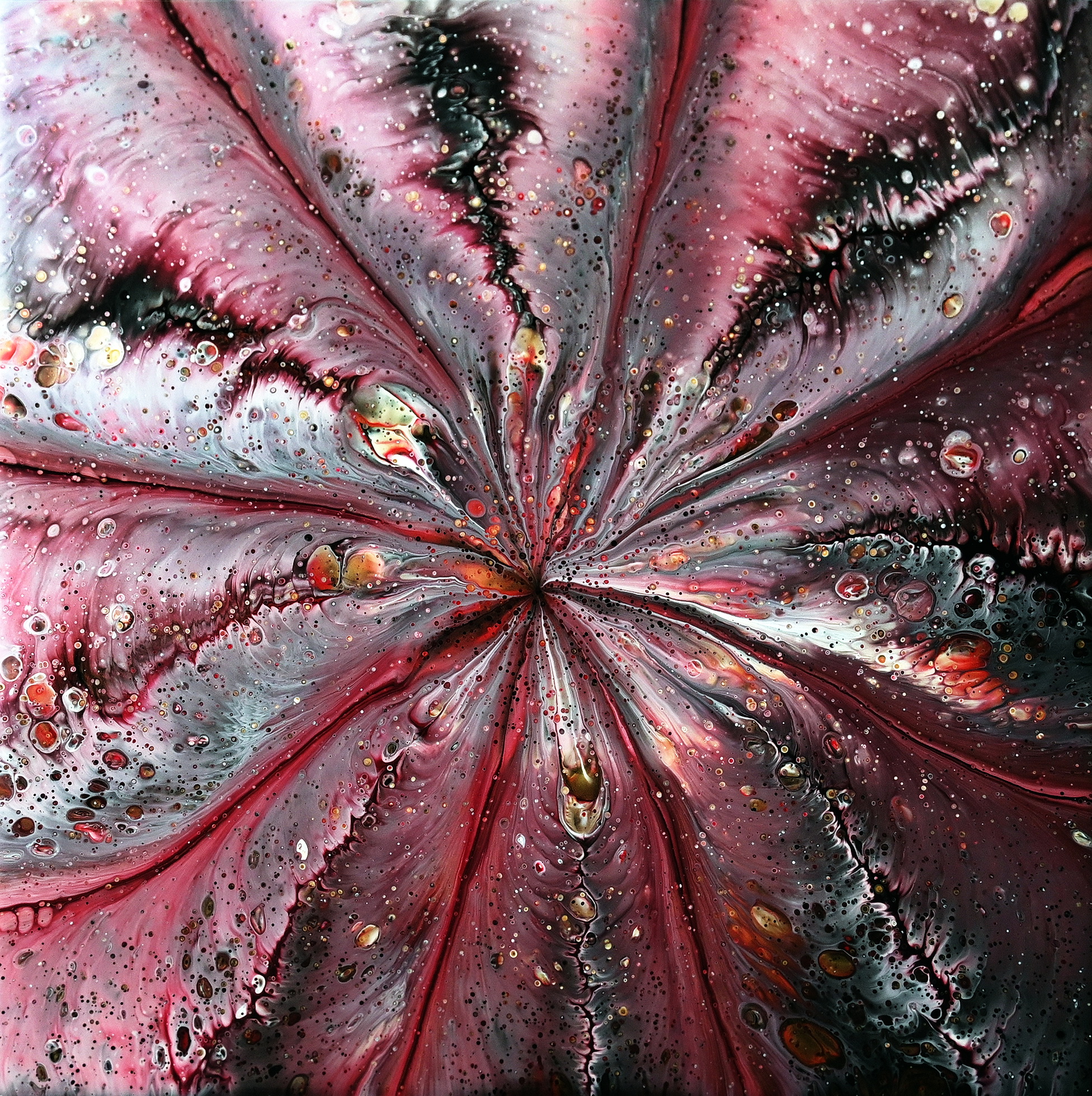 Colours:Amsterdam Titanium white, Carmine, Oxide black and Pebeo iridescent precious gold.