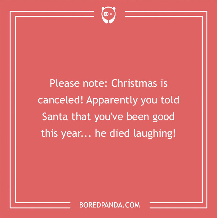 Please note: Christmas is canceled! Apparently you told Santa that you've been good this year... he died laughing!