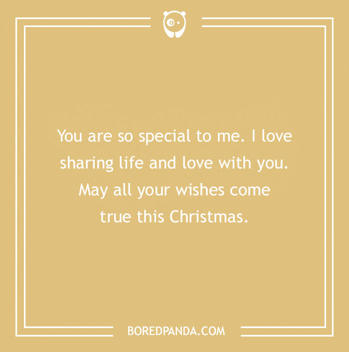 You are so special to me. I love sharing life and love with you. May all your wishes come true this Christmas.