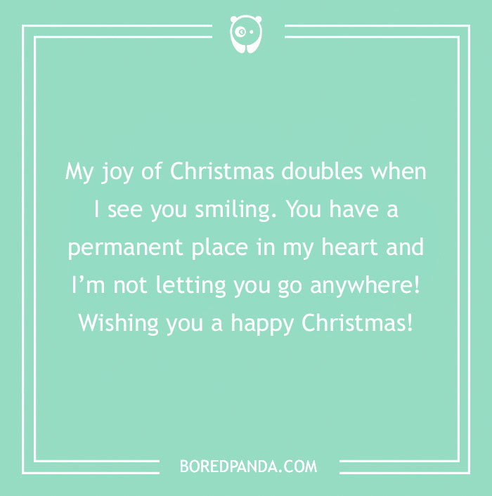 My joy of Christmas doubles when I see you smiling. You have a permanent place in my heart and I’m not letting you go anywhere! Wishing you a happy Christmas!