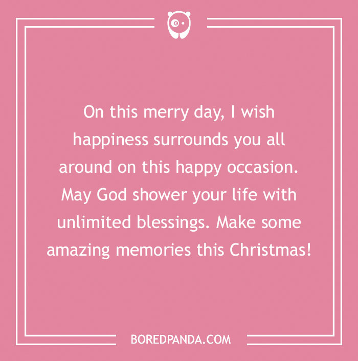 On this merry day, I wish happiness surrounds you all around on this happy occasion. May God shower your life with unlimited blessings. Make some amazing memories this Christmas!