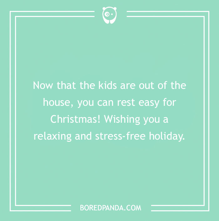 Now that the kids are out of the house, you can rest easy for Christmas! Wishing you a relaxing and stress-free holiday.