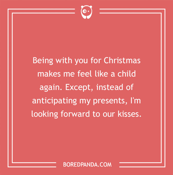 Being with you for Christmas makes me feel like a child again. Except, instead of anticipating my presents, I'm looking forward to our kisses.