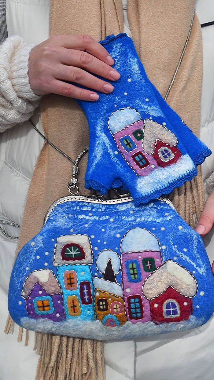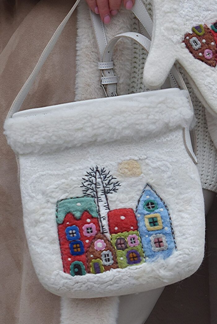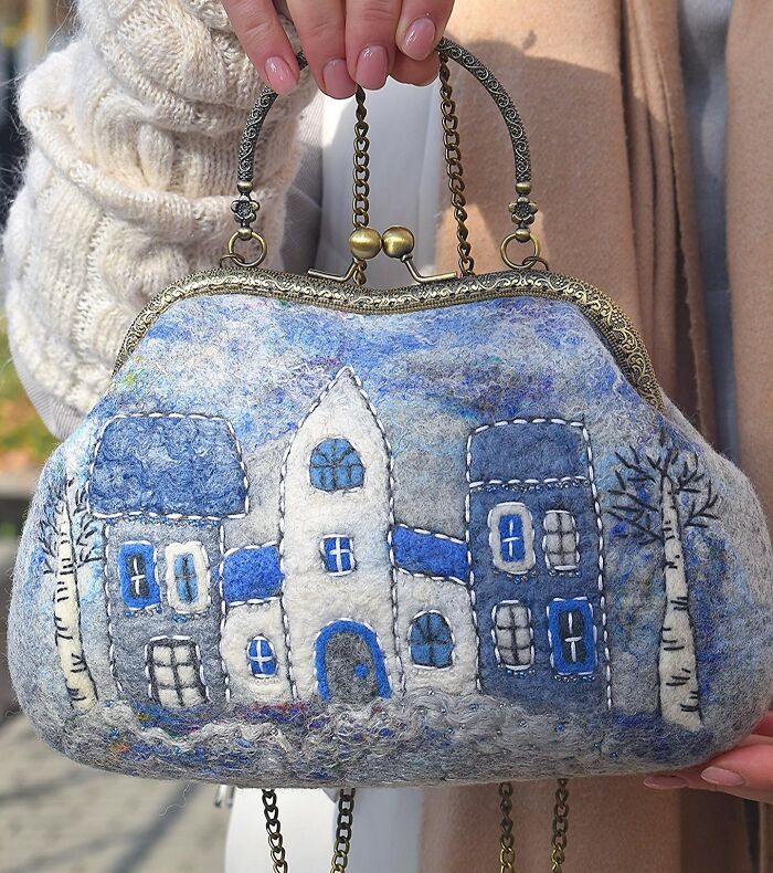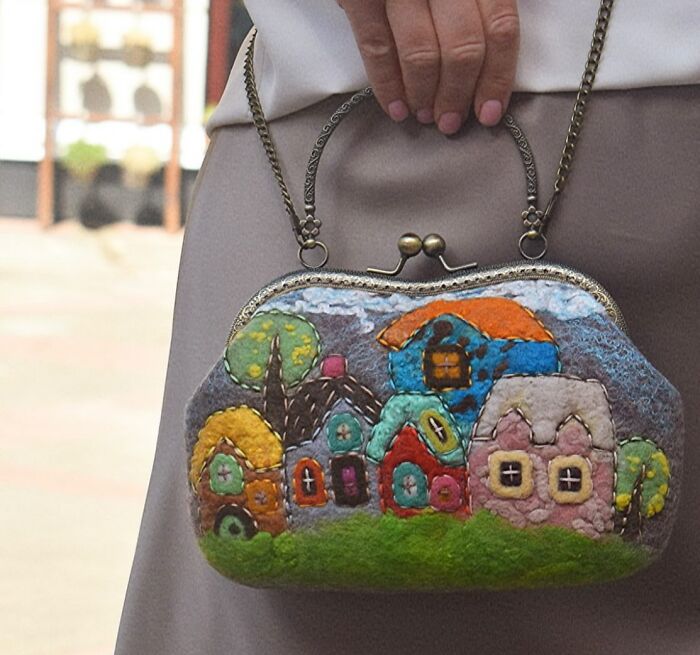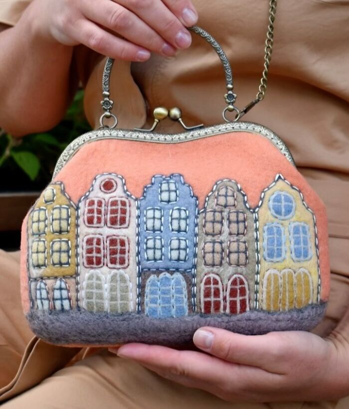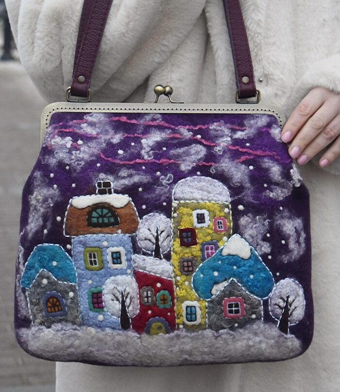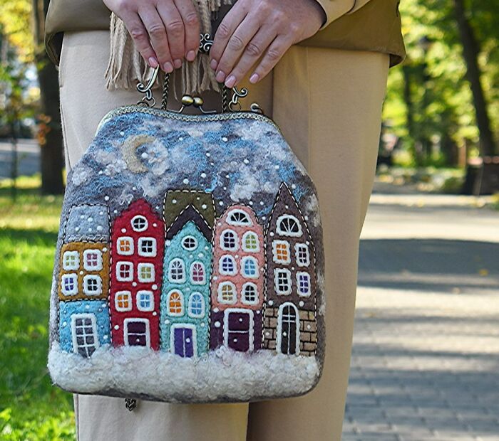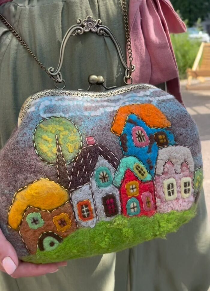 Olga decided to use wool to express her creativity due to it being a natural material. Also, it is a material with limitless possibilities, which helps to convey the way Olga sees this world. Here, in this post, you will see a lot of her work with cute houses felted on handbags. However, she does other different designs as well, so if you are interested in all of her creations, feel free to visit her Instagram page.