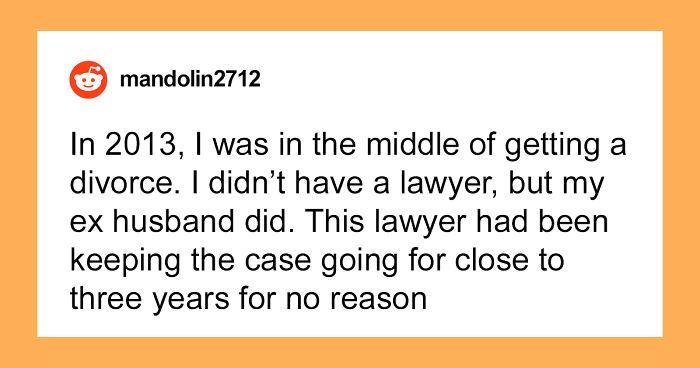 “I was honestly just so fed up with that lawyer. I had been ready to be divorced for a very long time and they were making it impossible to get done,” redditor u/mandolin2712 revealed to Bored Panda.