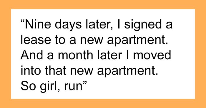 Yeah, so that video was recorded on August 6th, 2021. Nine days later, I signed a lease to a new apartment. And a month later I moved into that new apartment. So girl, run.