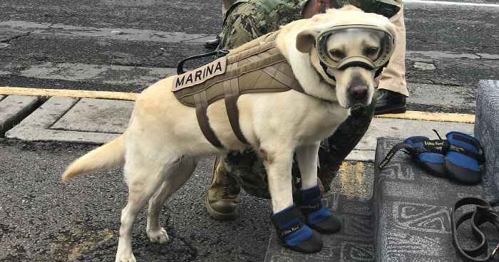 Frida the Labrador plays an integral role in that operation. Working with SEMAR, the Mexican Navy’s canine unit, the brave rescue dog is currently hard at work searching for survivors. Equipped with her own personal protective equipment, including customized boots and goggles, Frida has saved over 50 people in her short career, a number of whom were rescued from the rubble in Oaxaca. Despite the double tragedy that Mexico has recently experienced, we’re glad to know that Frida is working around the clock to find the buried and rescue the injured. Way to go Frida!