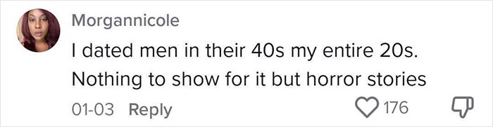 Load More Replies...Everyone is different and and I don't really like the way this guy tries to suggest that all men and women in these relationships are looking for the same thing. That said, younger people sometimes simply lack the life experience to be able to judge when they're being used and I think it's for that reason that family and friends are often a bit weary when someone is in a relationship with a large age gap. If both sides are happy and know what they're getting into, I don't see the problem. But if my daughter had dated a 40 year old when she was 20, I'd have also been keeping a close eye.