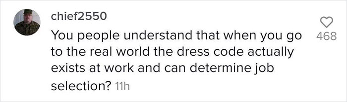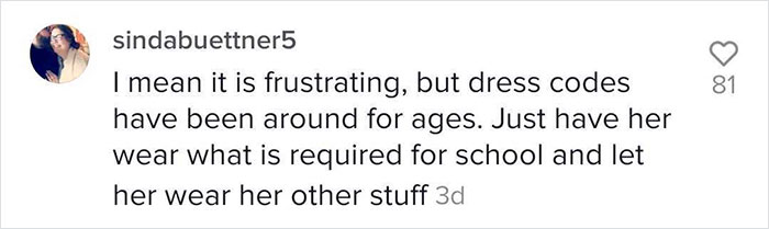 Load More Replies...My mother works at a school which has a dress code. Most of it is for health and safety (no slippers/flip flops, nothing so oversized that it hampers movement or catches on equipment and so on) but female students are not allowed to wear X,Y and Z whereas the male students can. I tried to raise the issue of gender equality with her and she just shut me down. "Girls shouldn't wear revealing clothing in case a man looks at them". We're talking 5-11 year olds. If an ADULT finds a CHILD's body distracting or whatever then we need to look at the ADULT as well. If you're disturbed by shoulders, legs, midriffs, etc on literal children MAYBE DON'T BE IN A JOB AROUND CHILDREN.