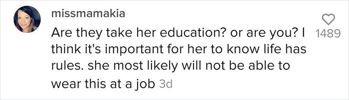 Load More Replies...I'm probably too European to understand what's going on. How can a teacher get offended and decide to deny a girl her education just based on a shirt that she's wearing? What perversity in their mind got triggered that they are sexually aroused by a 12 year old girls belly button? As I said, I'm probably too European to understand this insanity.
