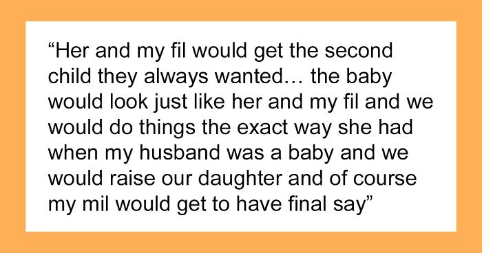 It turns out that the mother-in-law expected to be in all of the baby’s first outings and moments, taking the child everywhere and showing the girl off, all the while making every decision and not answering to anyone. In other words, she wanted the OP’s baby to be the second child she and her husband always wanted, leaving no space for the girl’s actual mother.