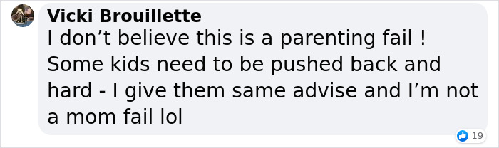 Load More Replies...My rule is you ask nicely 3 times for them to stop, then you push back. I was bullied so badly in school, all my foster parents did was move me to a different school when I got so depressed and became suicidal. I ended up going to 3 different high schools. Please teach your kids to stand up for themselves, because there are parents who won’t do anything if their kid is a bully, and some even encourage it.