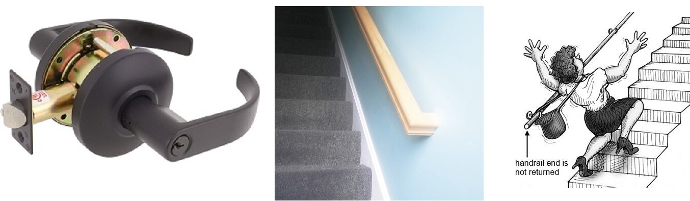 In the US the ADA requires levers in commercial settings, but in residential buildings (possibly excluding some apartment buildings?) you can still use a k**b. For a fairly long time, most building codes have required that handrails for stairs have a return that reaches the wall specifically to prevent this sort of thing.Perhaps down the road we'll see a requirement for a similar return on door handle levers, but in the meantime there's definitely no prohibition on using them voluntarily. Untitled-6...fc8d3a.jpg