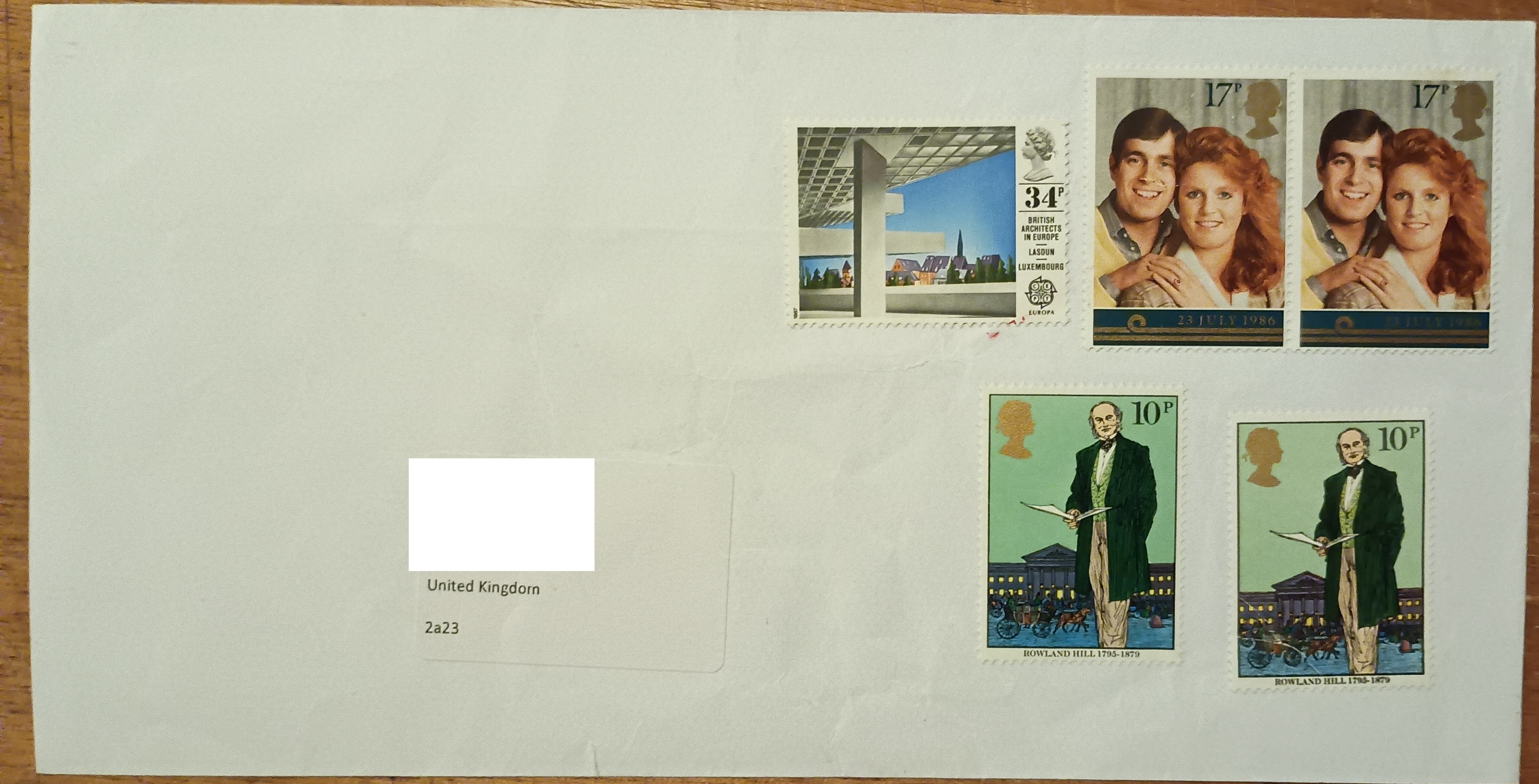 Load More Replies...In 2023 I got something similar but the stamps were (disgraced) Prince Andrew from 1986, Sir Rowland Hill from 1979 and British Architects in Europe 1987. As you can see these were not franked either. When my daughter was working at the Holland Park Open Theatre they got a letter covered in 1/2d and 1d stamps from the reign of King George VI! stamps-682...26d81a.jpg