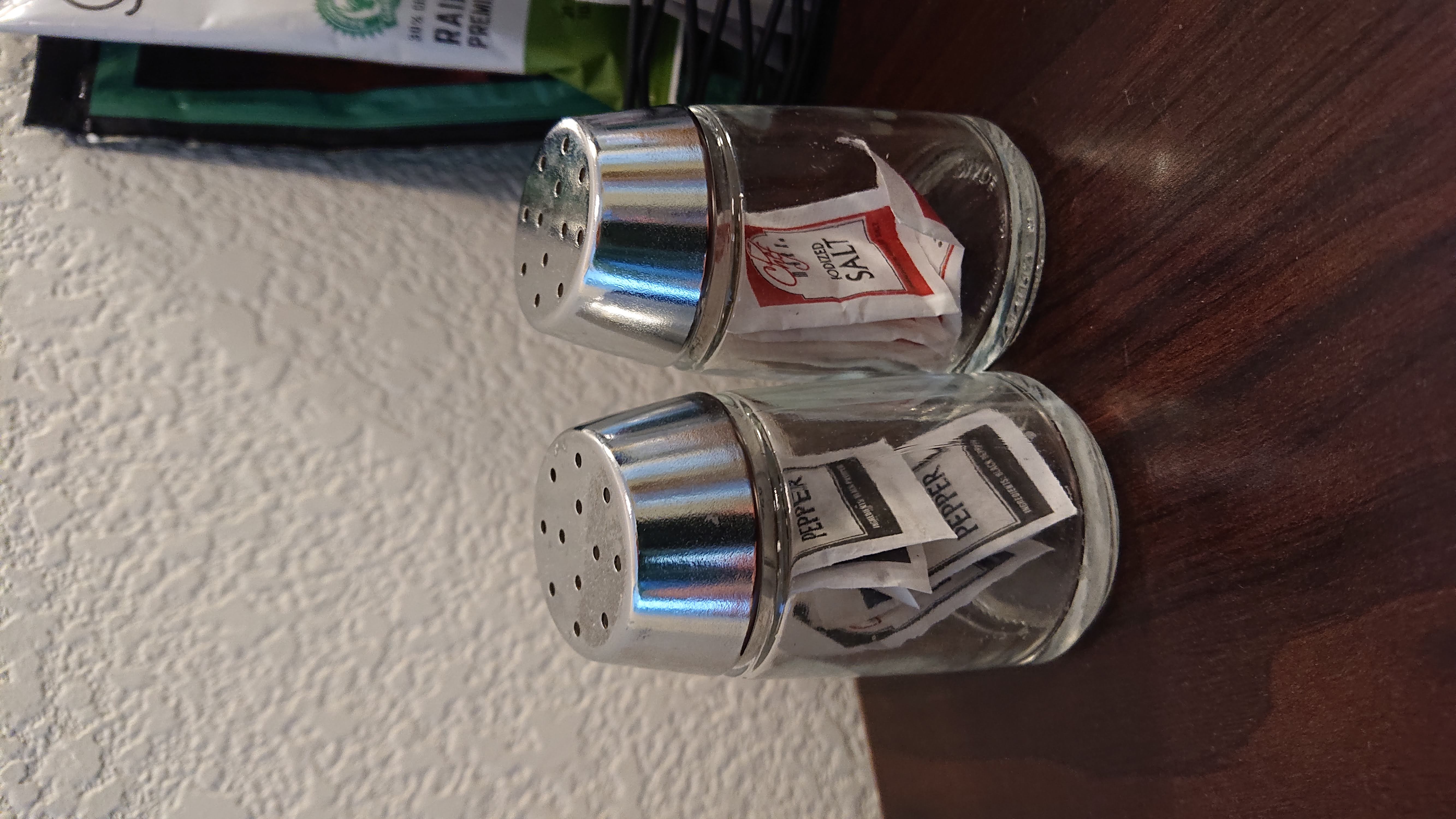 My Hotel Room Provided Disposable Salt And Pepper Shakers