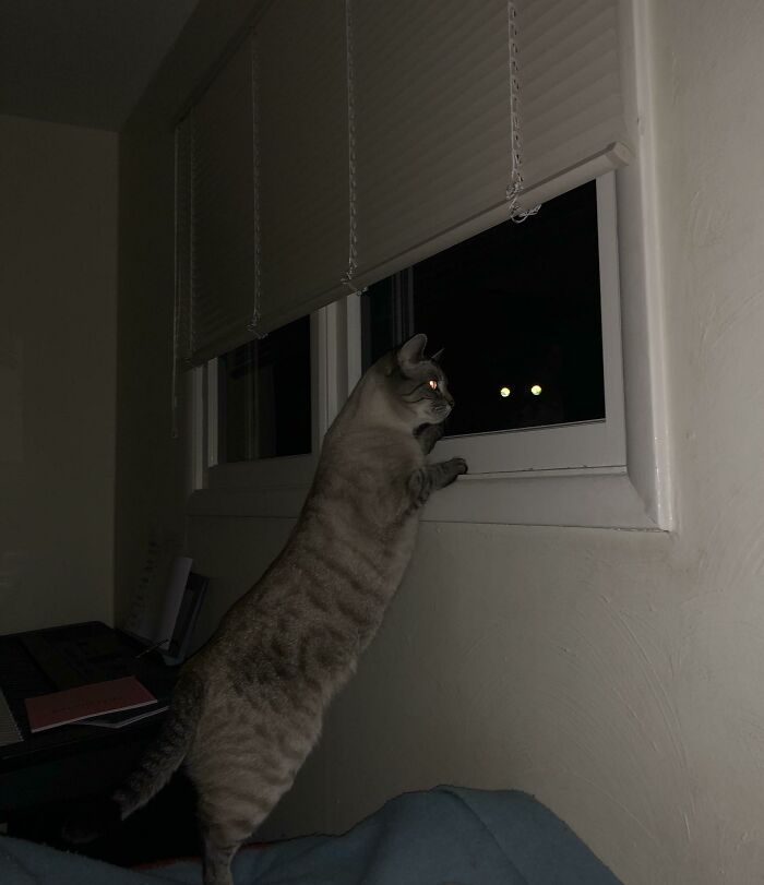 My Roommate’s Cat Was Being Cute In The Middle Of The Night So I Took A Picture With Flash And Saw This