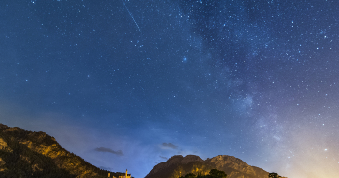 I’m visiting Schwangau Germany this week to view the castles, paraglide and take photos. This storm passed earlier this morning so I ran out with camera in hand and while I missed most of the storm I discovered the Milky Way overhead. The meteor was an added bonus.