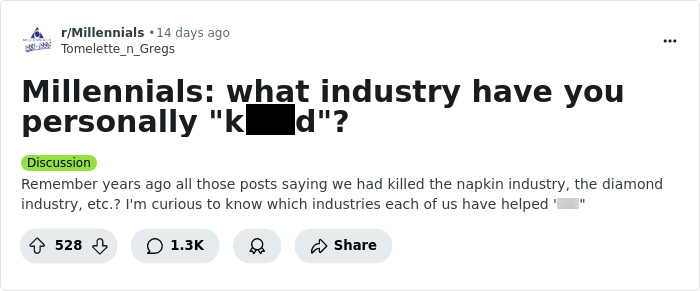 Millennials Didn’t Just Destroy These 40 Industries, They Buried ’Em And Salted The Earth