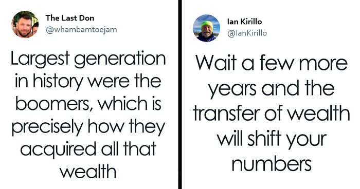 Load More Replies...I always enjoy the argument that millennials just need to hold out long enough to get their inheritance from their grandparents. I’m a millennial and all of my grandparents have passed all I got was $1000 and an heirloom ring worth about $200.