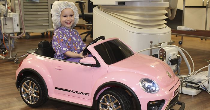 So anything that hospital staff can do to ease the anxiety before surgery is hugely beneficial. And what is more relaxing than cruising around the wards in a toy car?
