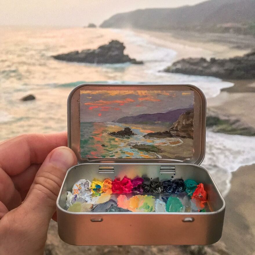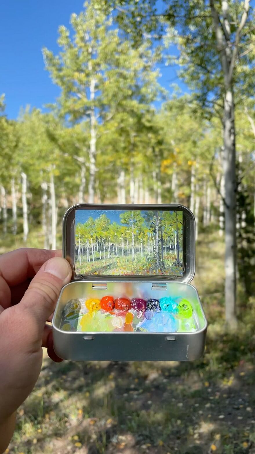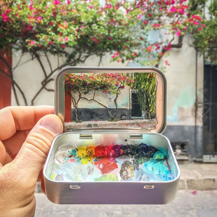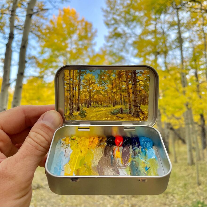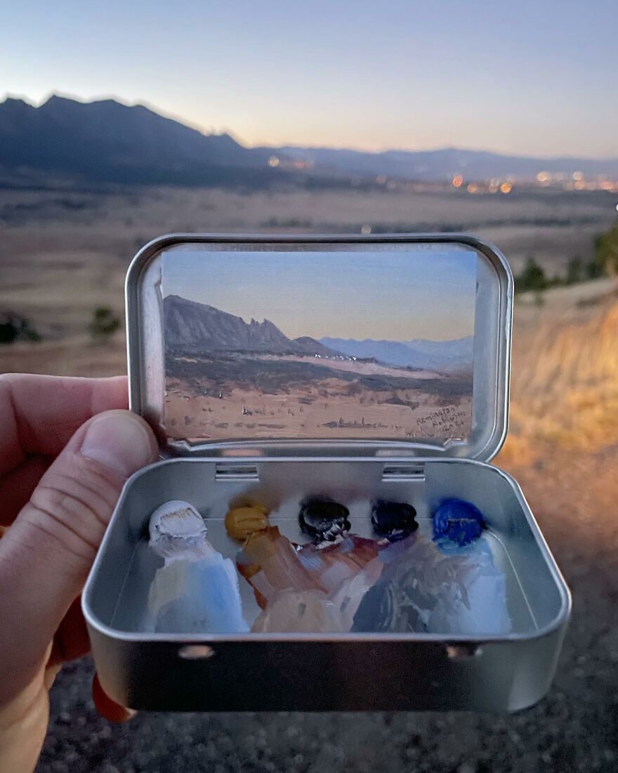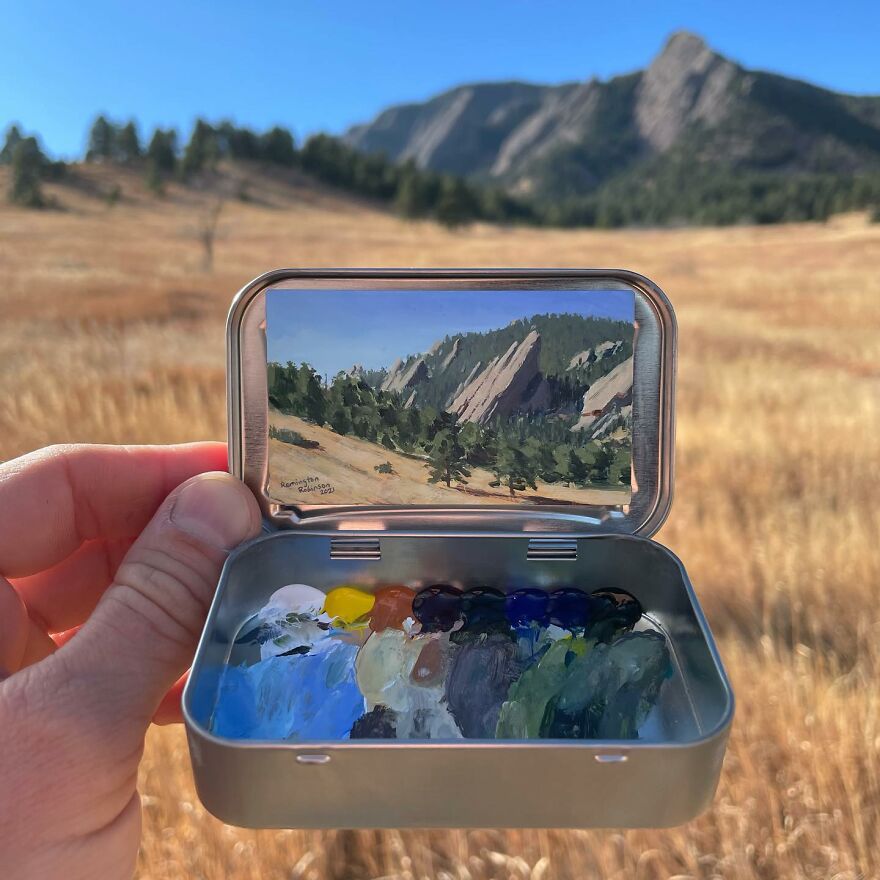 Interview With ArtistWho could have thought that simple Altoid tins could transform into various useful everyday objects and even masterpieces? In this case, Ohio-based artist Remington Robinson continues to create beautiful mini Plein air paintings. His tiny blank canvas turns into realistic paintings portraying natural and urban landscapes.