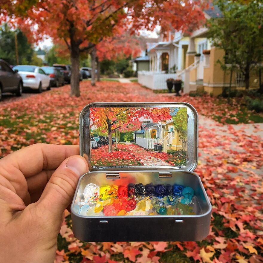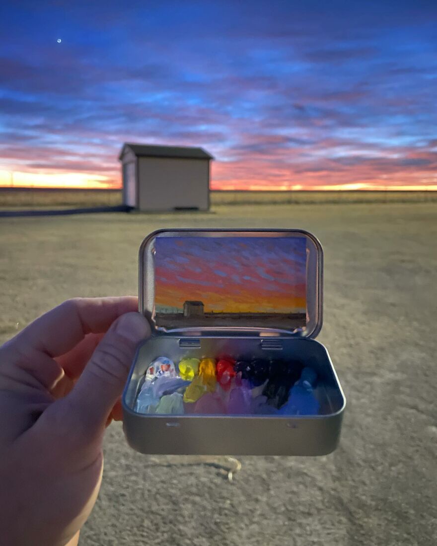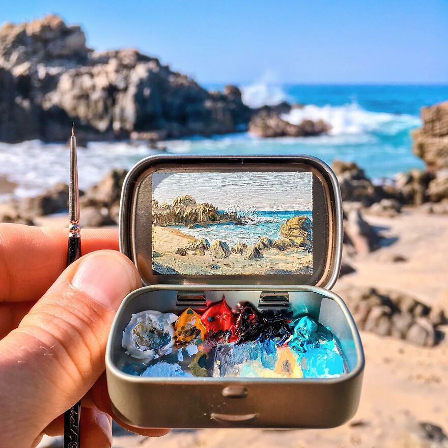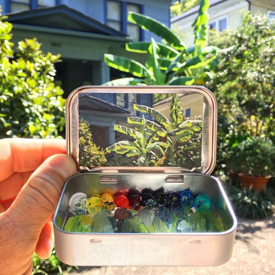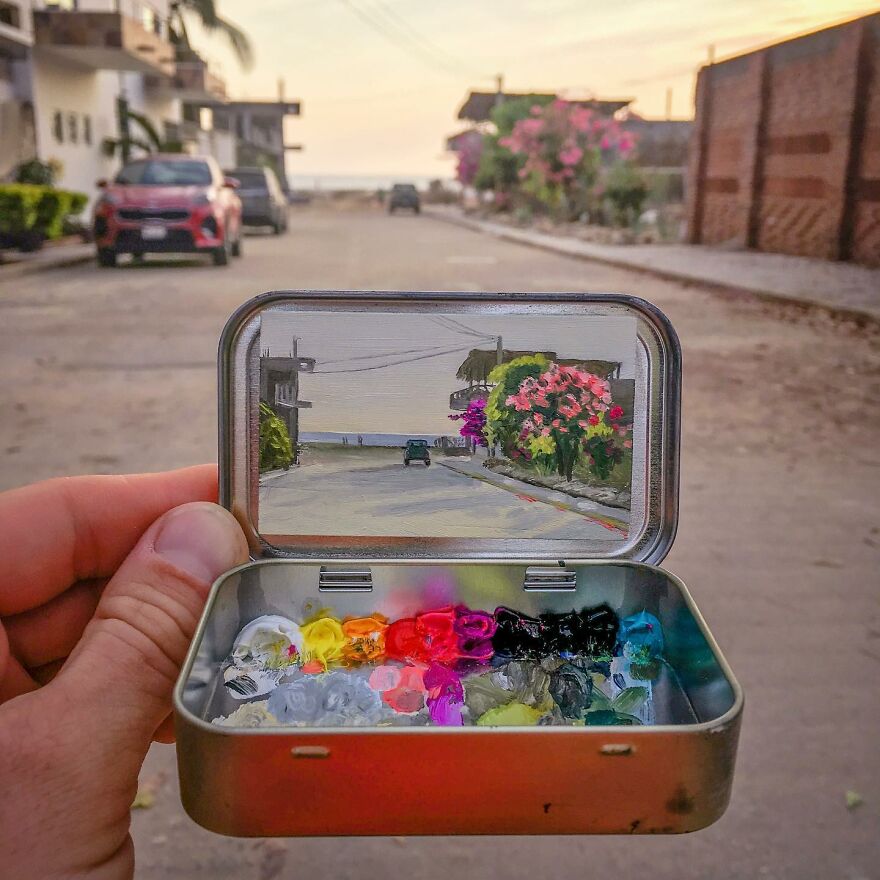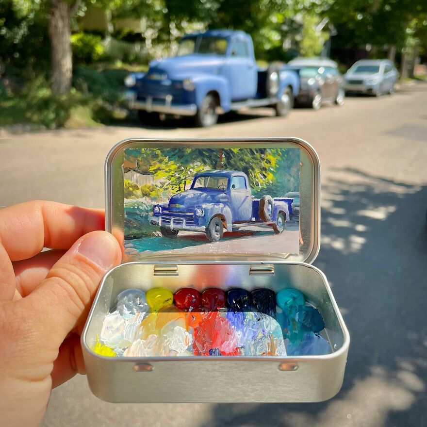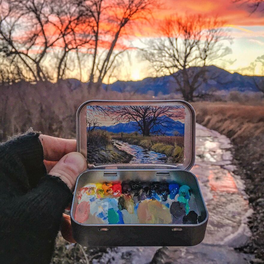 Interview With ArtistWho could have thought that simple Altoid tins could transform into various useful everyday objects and even masterpieces? In this case, Ohio-based artist Remington Robinson continues to create beautiful mini Plein air paintings. His tiny blank canvas turns into realistic paintings portraying natural and urban landscapes.