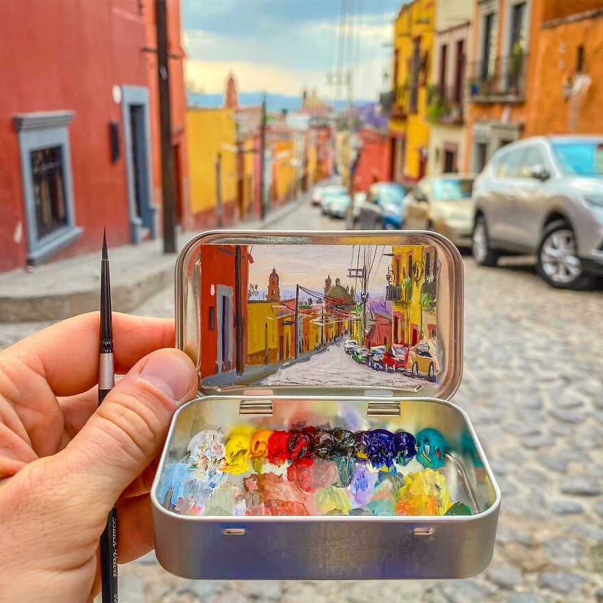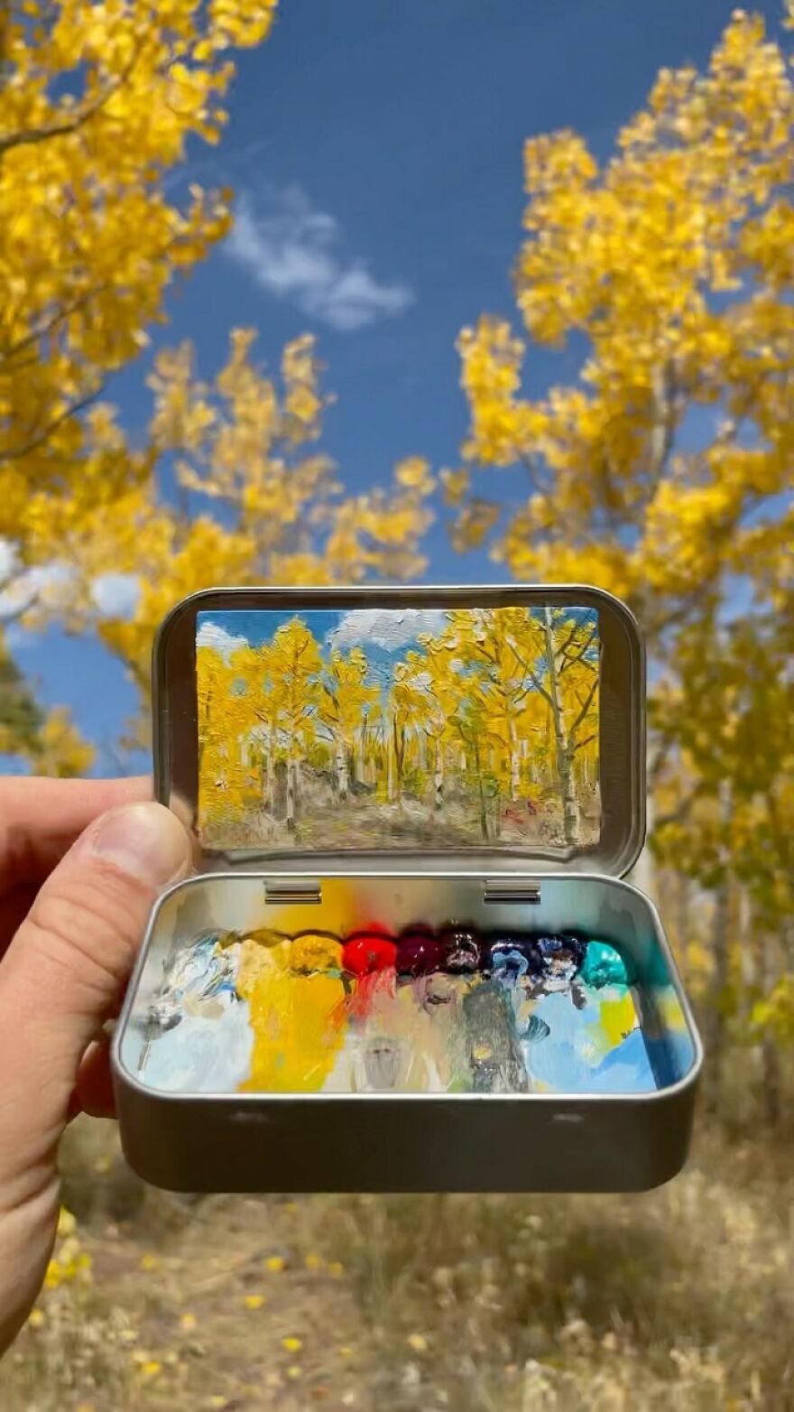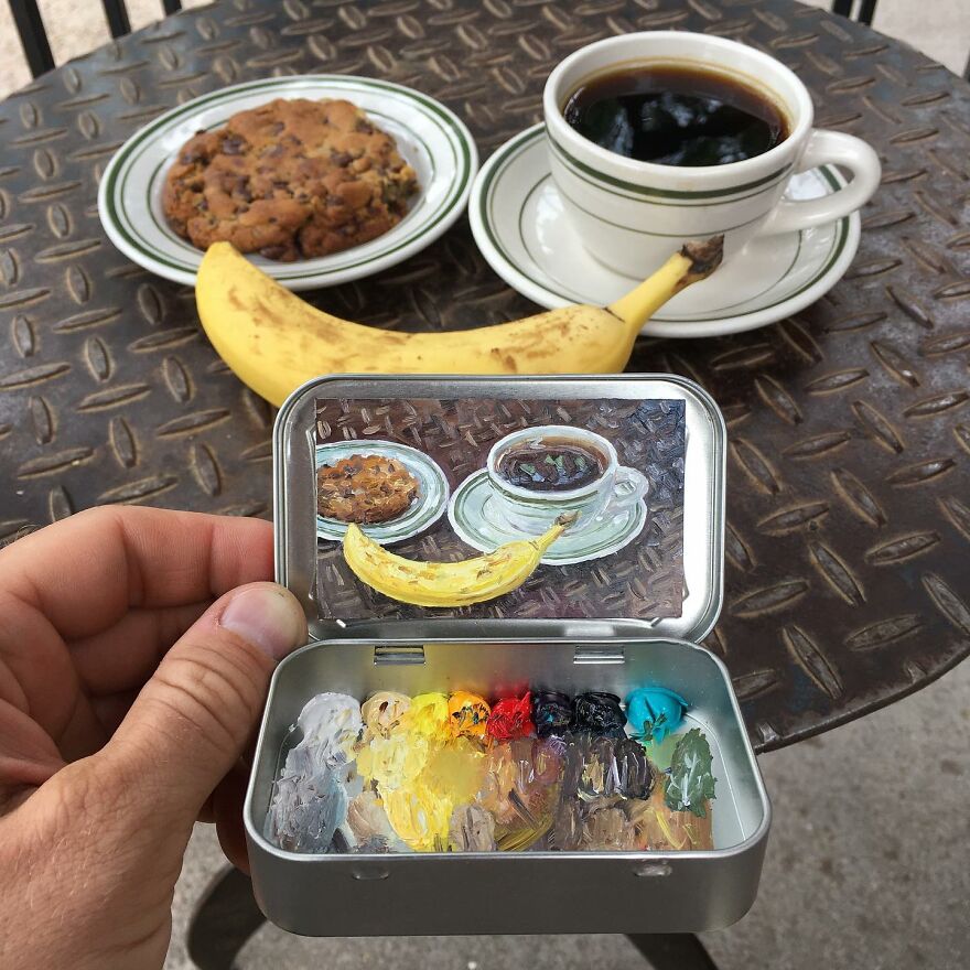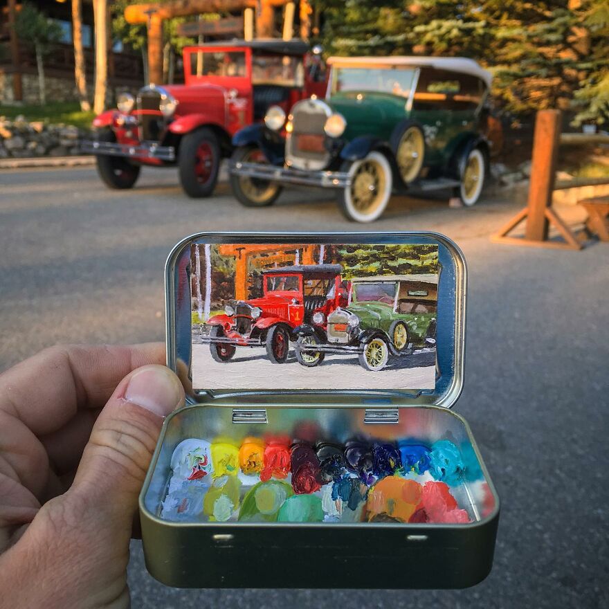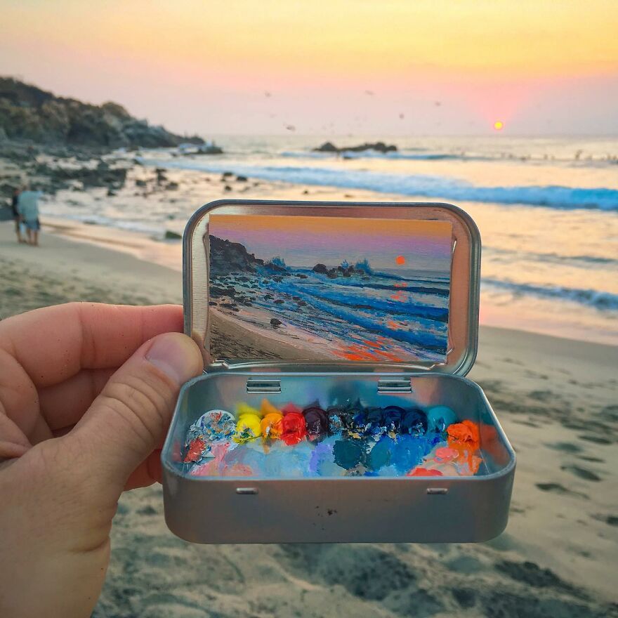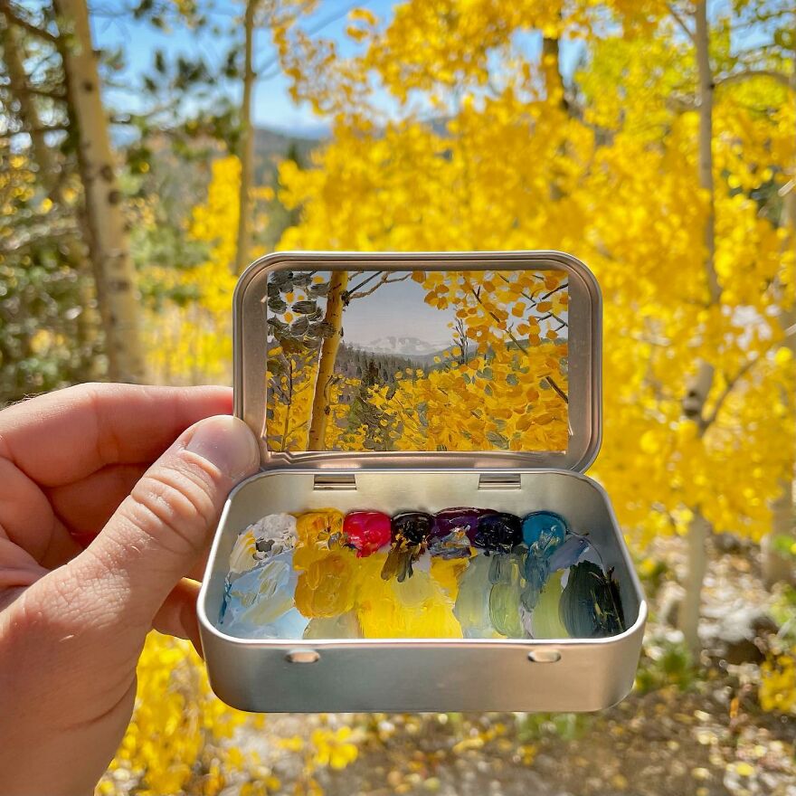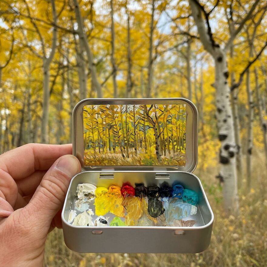 Interview With ArtistWho could have thought that simple Altoid tins could transform into various useful everyday objects and even masterpieces? In this case, Ohio-based artist Remington Robinson continues to create beautiful mini Plein air paintings. His tiny blank canvas turns into realistic paintings portraying natural and urban landscapes.