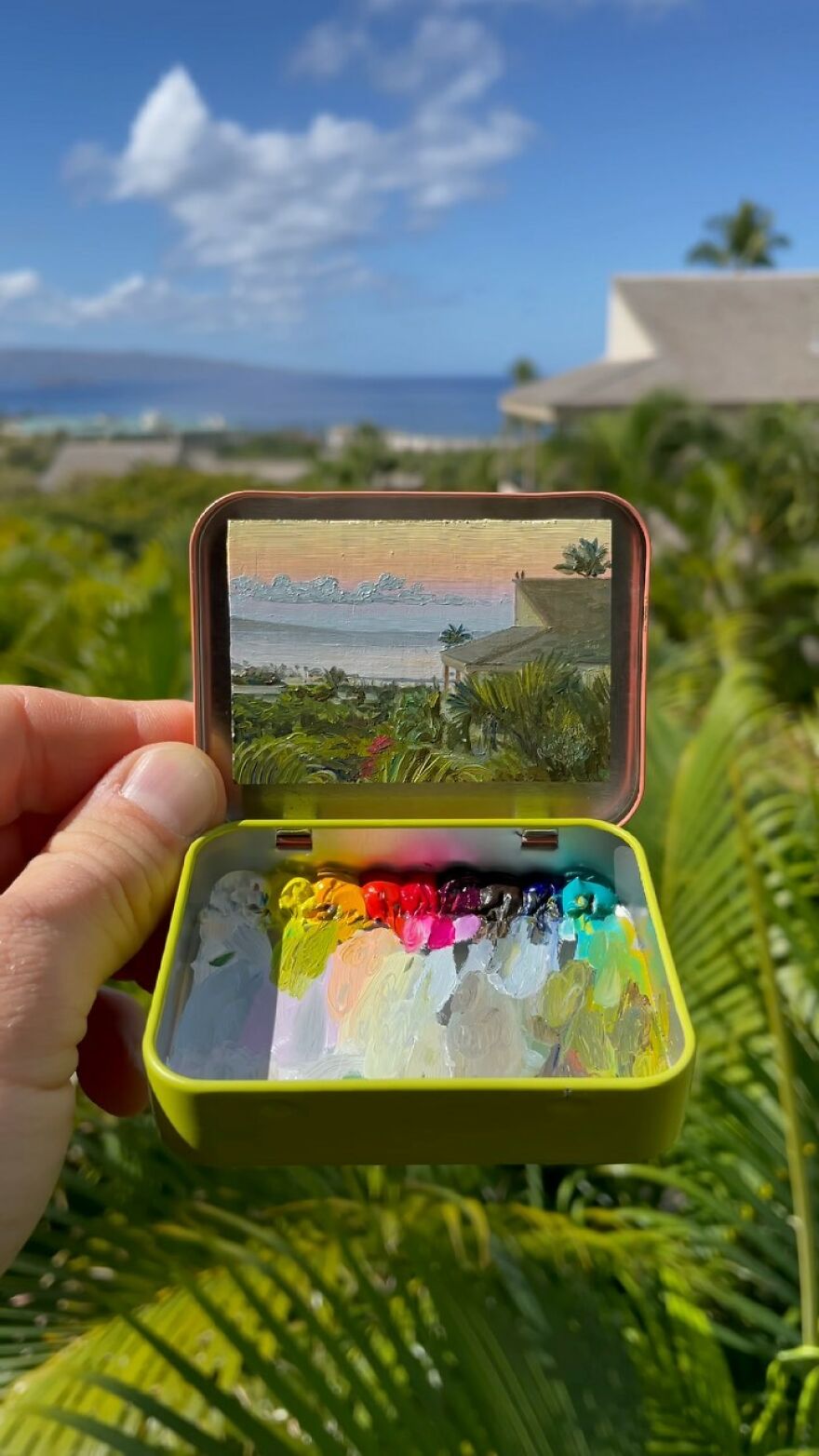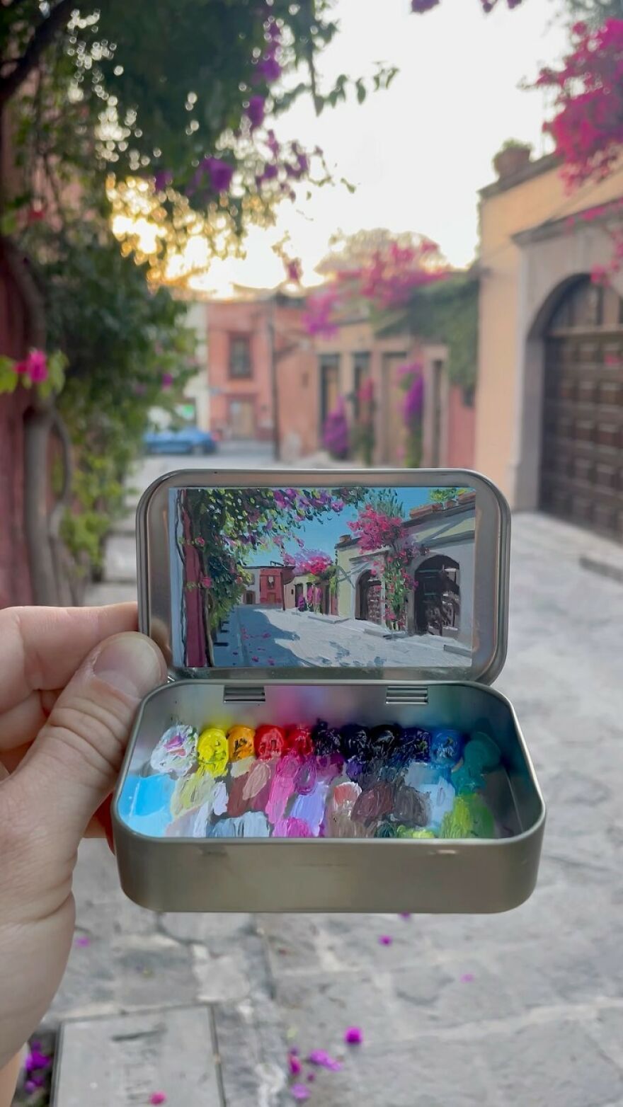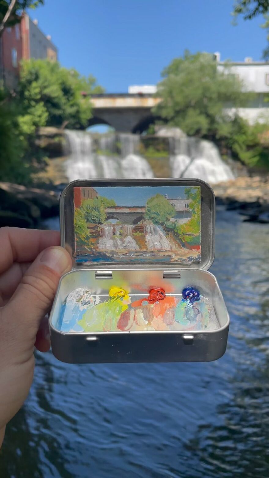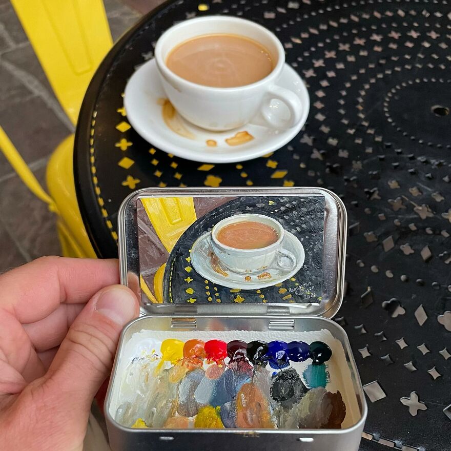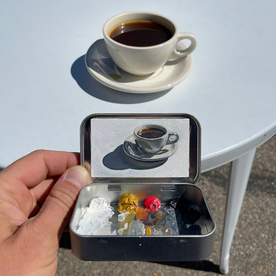 Interview With ArtistWho could have thought that simple Altoid tins could transform into various useful everyday objects and even masterpieces? In this case, Ohio-based artist Remington Robinson continues to create beautiful mini Plein air paintings. His tiny blank canvas turns into realistic paintings portraying natural and urban landscapes.