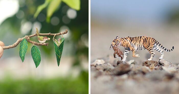 Hello folks, I am Vaishali. My partner Nayan and I are paper cut miniatures artists based in India. We make miniature hand-painted, layered, paper cut, extremely detailed artworks. We took up 365 days of miniature art challenge last year (2018) and continued it this year (2019). We have been making artwork every day since 1st January 2018 and have created 640 pieces for this art project so far. We chose birds as our topic for this unique art for the first year and after the completion of our first year's series, we thought of including other beautiful animals too. Through this series we want people to understand the beauty and details of nature and how important it is in our lives.