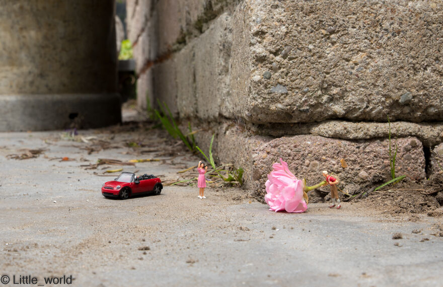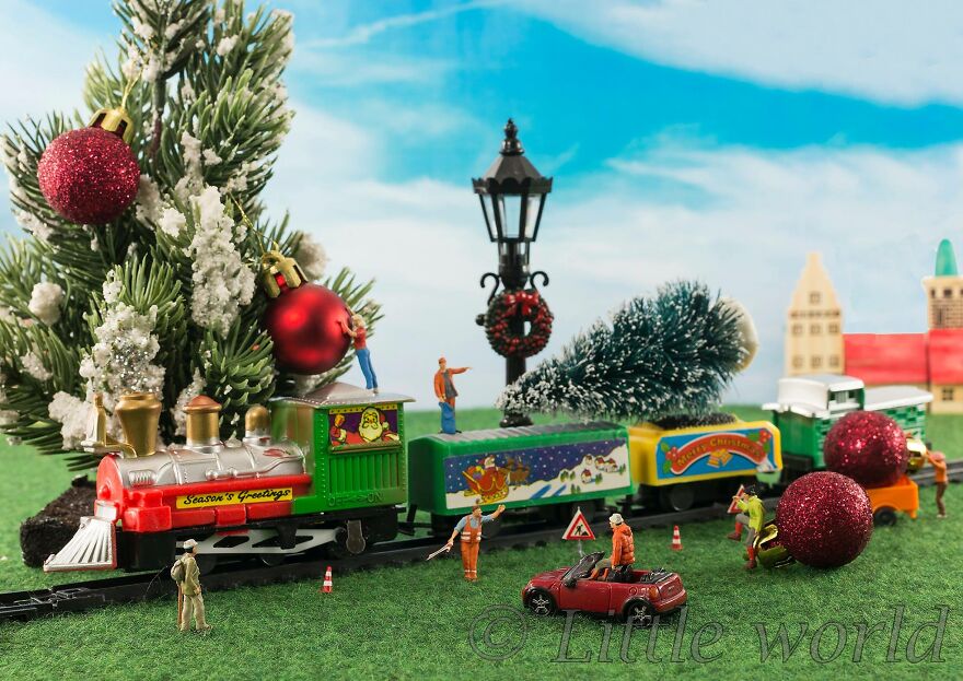 Through my creativity, I came up with the idea of putting miniatures in the ordinary world and taking pictures of them that put a smile on people's faces. Where my inspiration came from is difficult to say, you see miniatures near trains and think, I can do something fun with that.