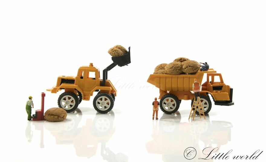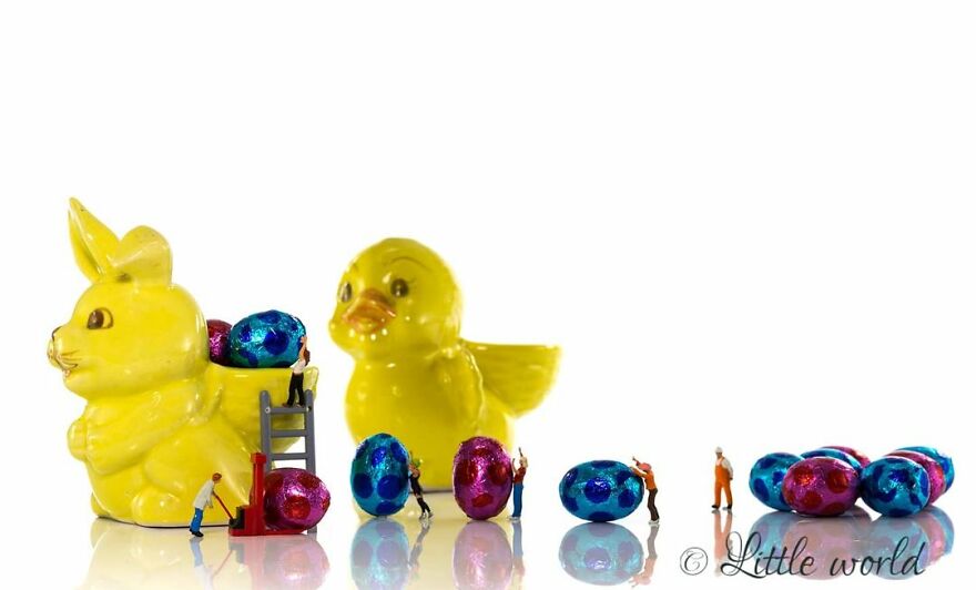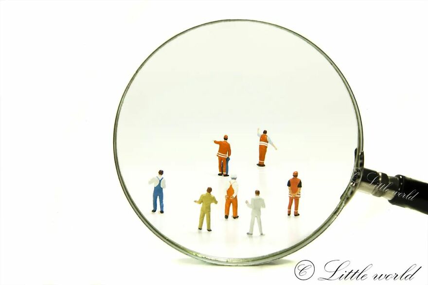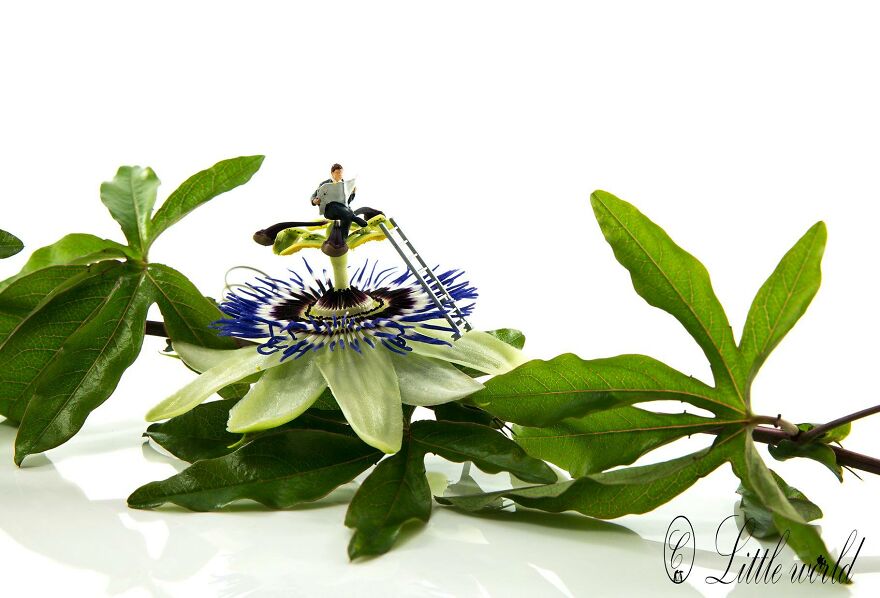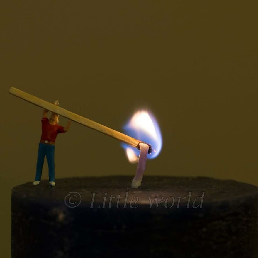 This is a series of macro photography of little people with things from the normal world. All with a smile.