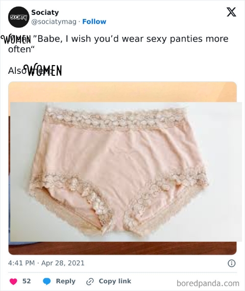 Load More Replies...Wow, what an absolutely awful post! About a third of these are actually funny, the rest is just sexist s**t targeting men instead of women. If you'd switch out the genders in all of these, it would sound like an incel pot. Why do we always work against each other, women versus men, as if it was some black and white battle? We are all human in the end, we all want to be happy, and we should bound together against those wo make us miserable, not against each other.