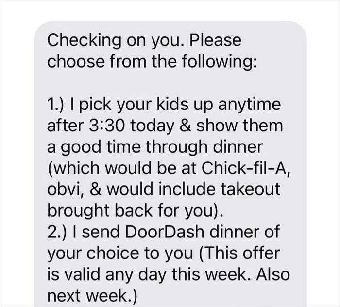 Please do this for friends esp. your disabled friends or grieving friends or tired friends just do this!