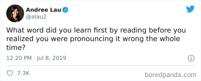 When Andree Lau asked Twitter to share some of the words they’ve been mispronouncing the entire time, people responded with gusto. And their answers are amazing and bound to make you giggle. Scroll on down and upvote your fave pronunciations, dear Pandas. If you feel up for sharing, let us know what words you’ve been saying wrong in the comment section (personally, I’d been saying ‘Hermione’ like Viktor Krum until Book 4 of HP).