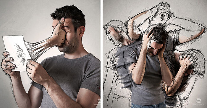 In the photo series “The Sketch of a Life”, I illustrate my life as if my pencil sketches gave birth to my actions. My photo ideas also depict events that are very important to me, for example, “Sketch the Life” is related to the birth of my daughter.