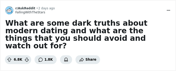 These Redditors opened up about the darkest truths they’ve learned while dating today and thankfully, they also shared some advice on what to avoid and look out for.