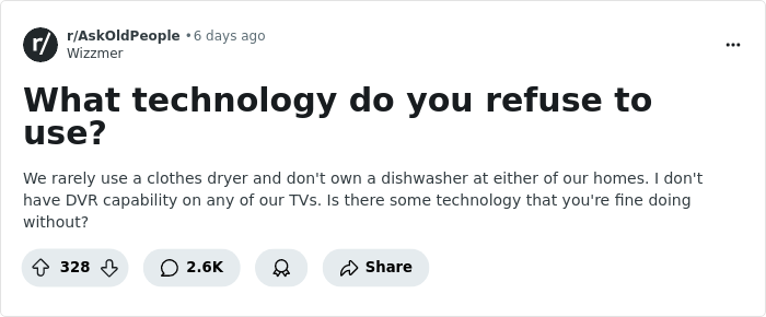 This is especially evident in a Reddit thread started by platform user Wizzmer. Last week, they made a post on r/AskOldPeople, inviting the community's members to list the technologies they avoid as much as they can. Below, you will find their replies.